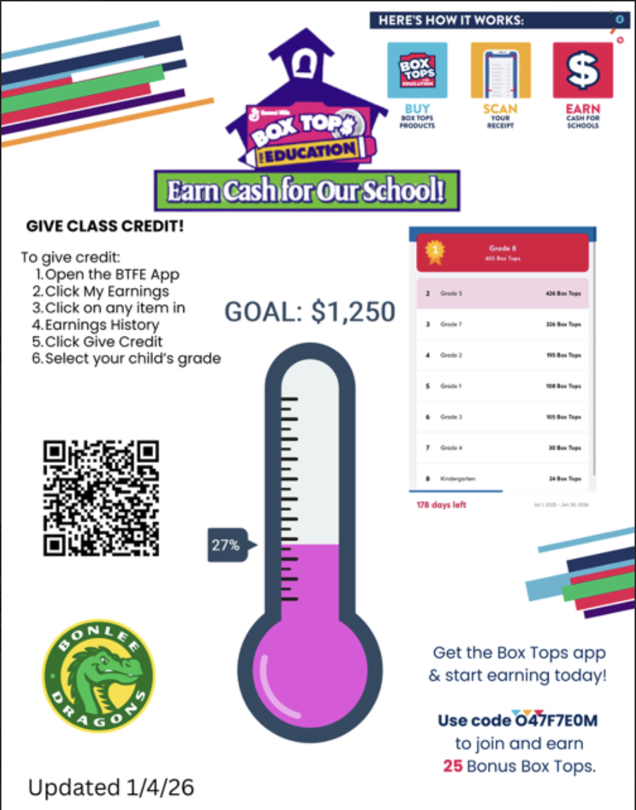 Monday, January 26th-PTA Worknight Kindergarten (Clegg), 1st (Leonard), 2nd (Ward, Banks), EC(Seawell)